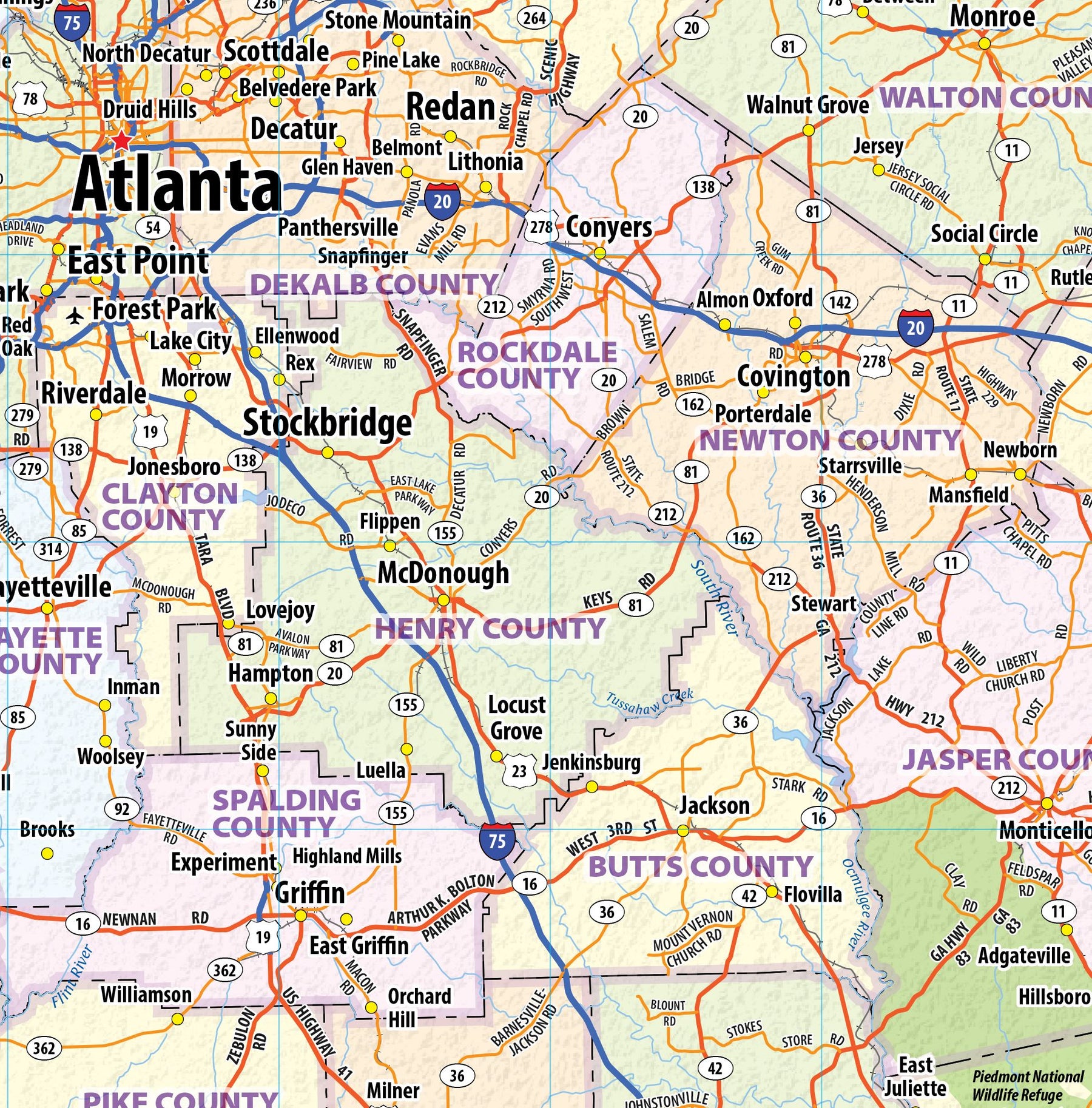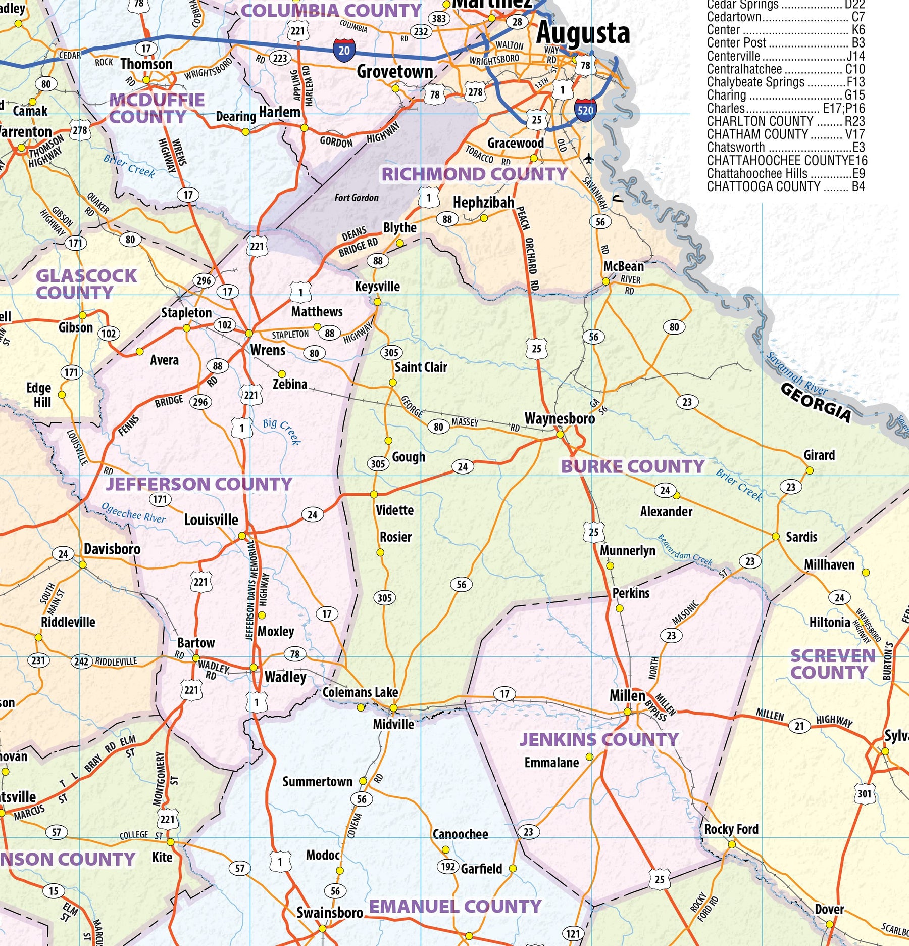 Georgia Wall Map by Topographics Maps