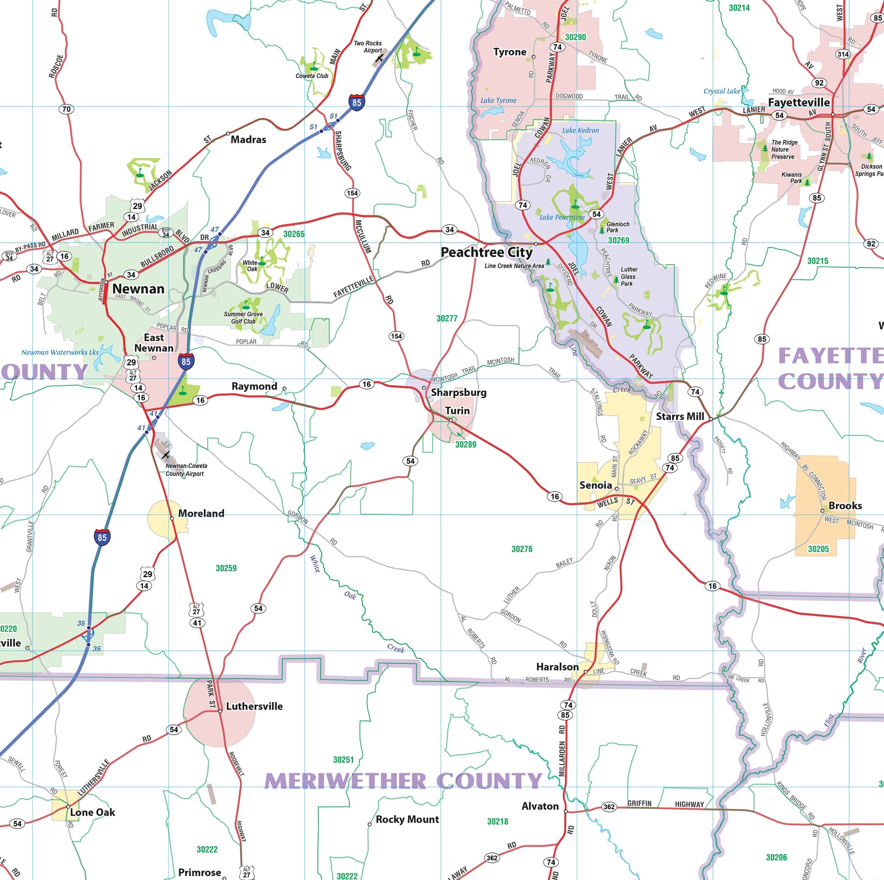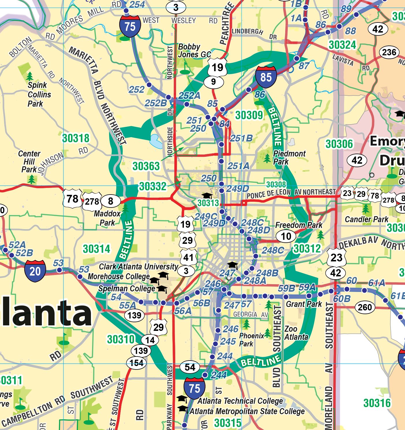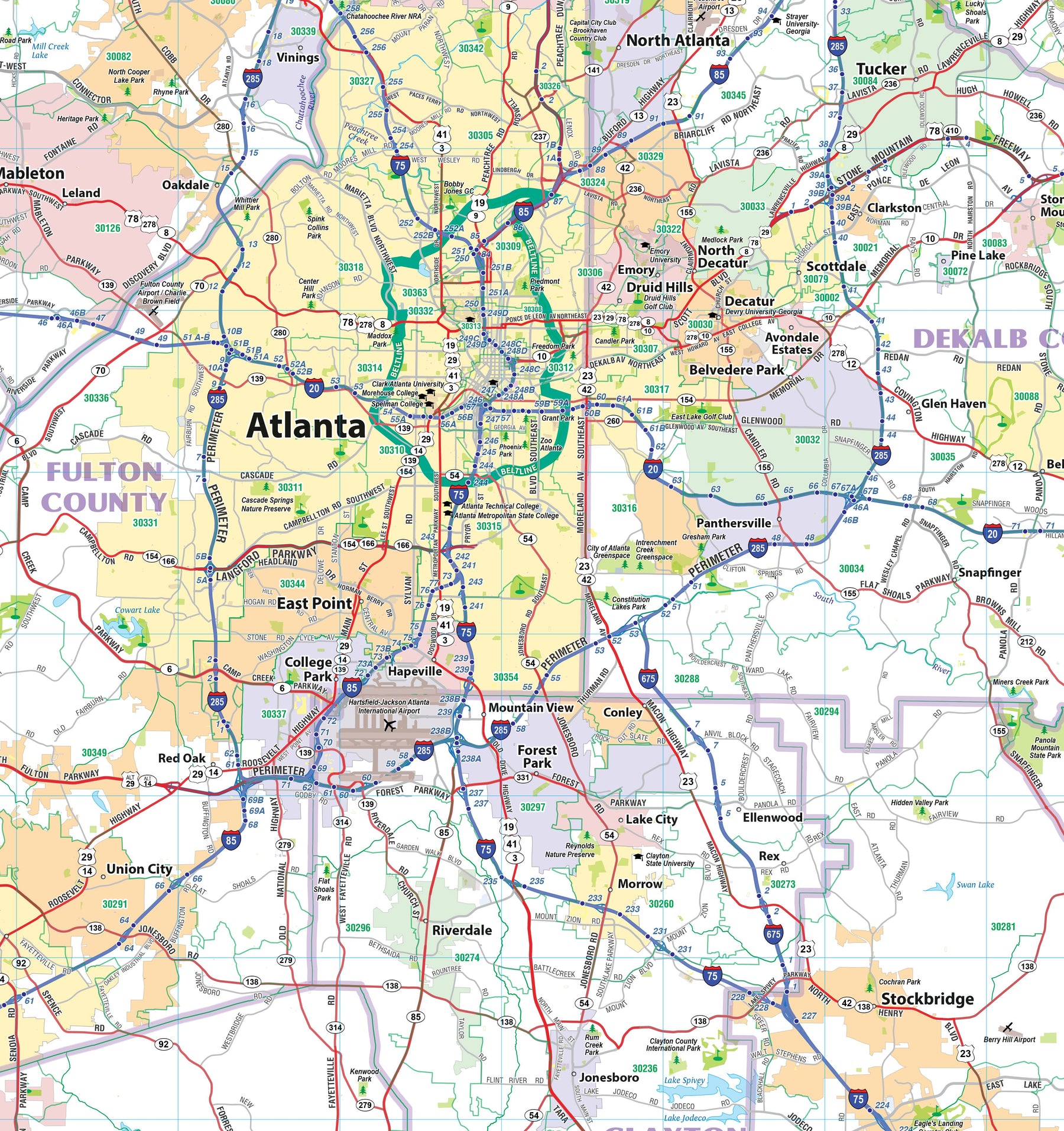 Greater Atlanta Regional Area Major Arterial Wall Map