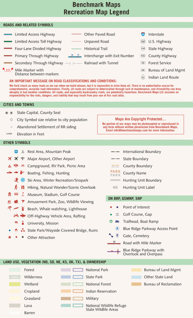If outdoor adventure and recreation is your thing, this is the map for you. This map is loaded with points of interest from camping sites, hiking trails, fishing spots, and bird watching locations ( see legend shown on 2nd picture) this map depicts all the best recreation locations. Not only functional this exquisite map uses shaded relief to portray the land a technique which combines shading with elevation tints that portray landforms much more clearly than contour lines. These techniques and elevation colors make mountains, highlands and valleys immediately obvious.